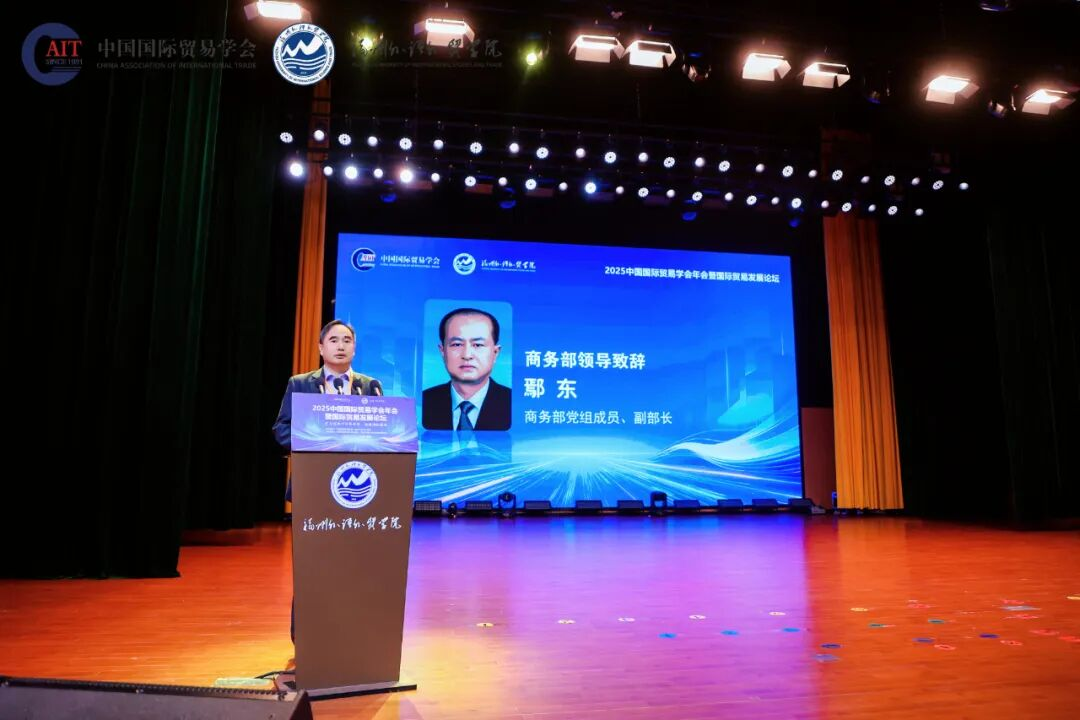 商务部党组成员、副部长鄢东在开幕式上发表书面致辞。他指出,当前我国正处在向第二个百年奋斗目标进军的关键节点,党的二十届四中全会擘画的“十五五”发展蓝图,为国际贸易高质量发展指明了方向。他强调,要坚持扩大开放与深化改革相结合,大力推动贸易创新发展,加快建设贸易强国。同时,他肯定了中国国际贸易学会作为连接政府、企业、学界桥梁纽带的重要作用,希望学会继续为高水平对外开放和商务事业高质量发展作出新贡献。